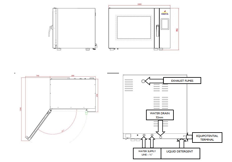 Le four 0V0664E de Vesta présente des spécificitées techniques avancées : une capacité de 6 plaques de 600x400 mm avec un espacement de 80 mm pour optimiser la circulation de l'air. Sa construction en acier inoxydable AISI 304, avec coins arrondis, simplifie le nettoyage tout en respectant les normes HACCP. Doté d'une porte à double vitrage, d'une lampe LED économisant de l'énergie, et utilisant un panneau de contrôle LCD de 7 pouces, il intègre également la connectivité USB et Wi-Fi pour une gestion personnalisée de vos demandes. Avec 99 programmes de recettes et un système innovation pour la ventilation et l'économie d'énergie, ce four offre un système de nettoyage automatique et un système de refroidissement rapide.