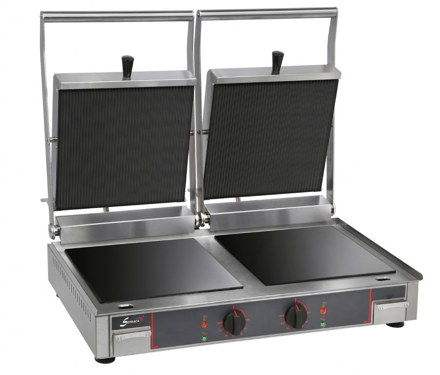 Grill spécial panini vitrocéramique double avec plaque inférieure lisse et supérieure rainurée