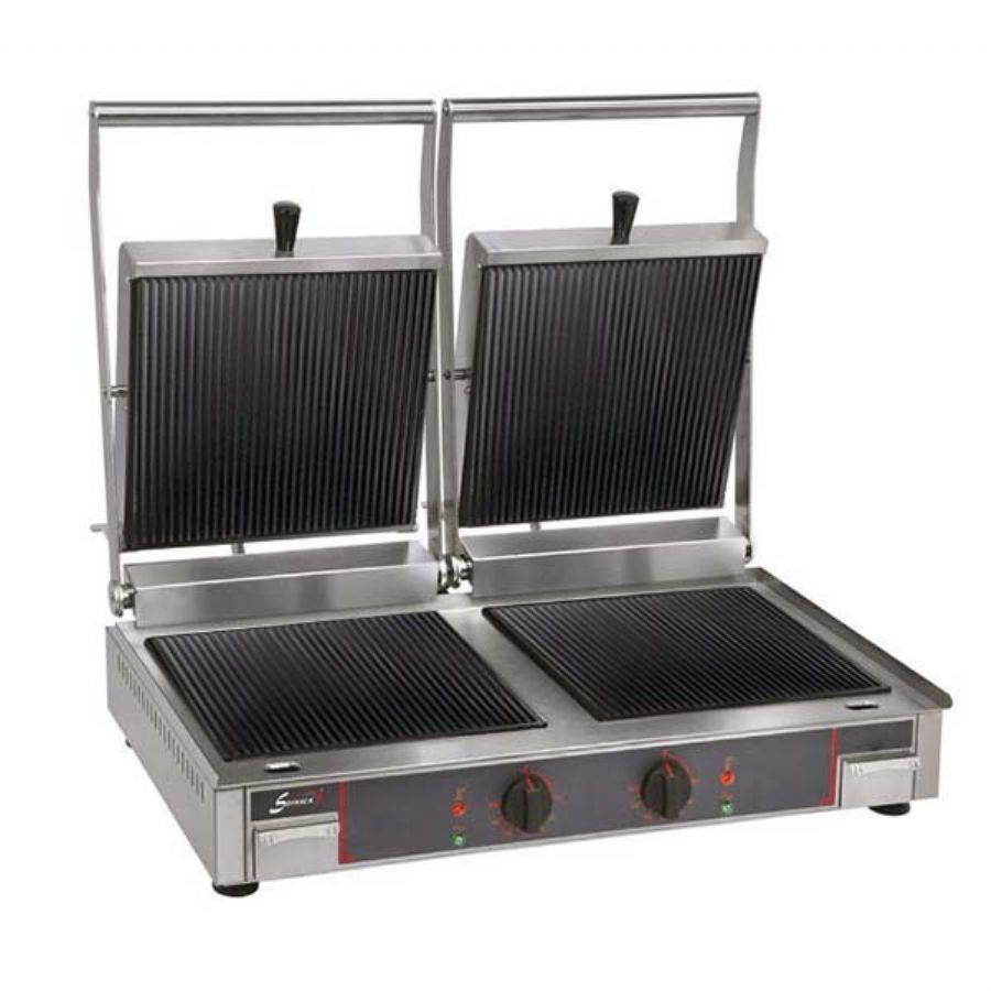 Grill spécial panini vitrocéramique double avec plaques inférieures et supérieures rainurées