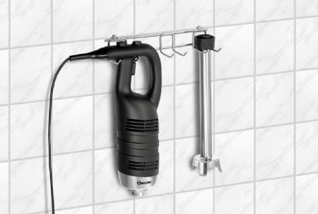 Le set de mixeur plongeant Bartscher affiche une vitesse de rotation maximale de 19000 tours par minute et permet de mixer, écraser en purée et couper en morceaux. Doté de lames en acier inoxydable de Ø 52 mm, ce blender plongeant performant garantit des résultats homogènes et précis. Sa longueur de mixeur plongeant de 410 mm et son câble de 2.1 m offrent une flexibilité d'usage optimale. Le réglage de la vitesse est en continu pour s’adapter à toutes vos recettes. D'autres éléments incluent un kit de démontage de lame, un bloc moteur, un support mural, le tout sur un appareil professionnel en acier inoxydable.