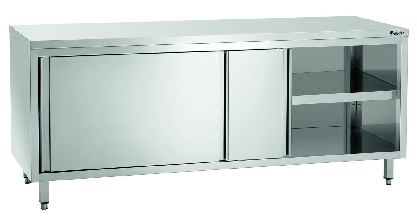 Meuble bas inox ouvert avec 2 portes coulissantes - 1800x700x850 mm