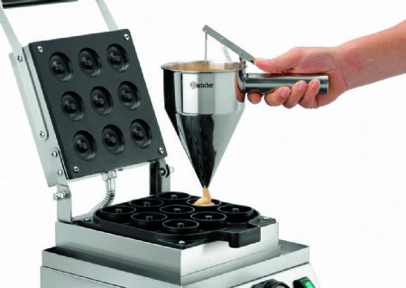 Propriétés : 1 unité de cuisson avec 9 donuts ,Manette avec affichage numérique pour la température et la durée ,Fonction de mémorisation ,Signal sonore lorsque la durée est écoulée (0:10 - 9:30 minutes)