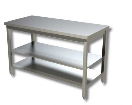 Table de travail inox 430 avec 2 tablettes inférieures et dosseret