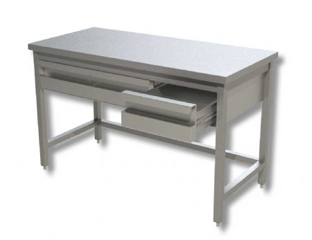 Table de travail inox 430 avec tablette inférieure et 2 tiroirs - 1000x600x850 mm