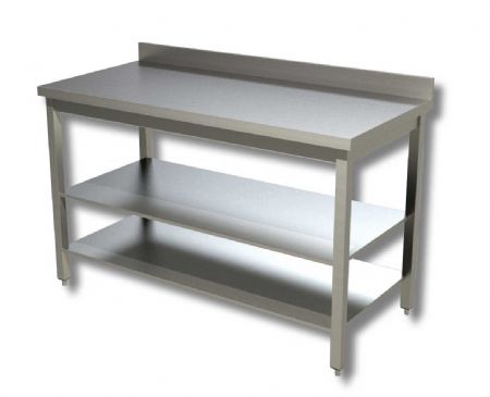 Table de travail inox 430 avec dosseret et 2 tablettes inférieures - 1800x700x850 mm