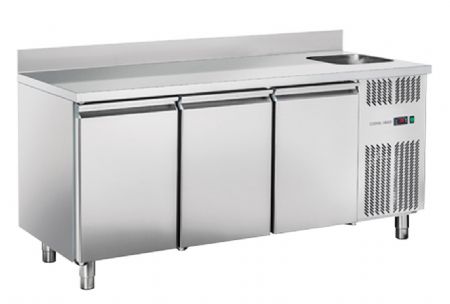 Table réfrigérée positive 0°C à +8°C 3 portes avec évier GN1/1 inox 460L - 1780x700x850 mm