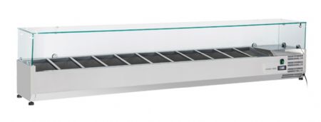 Vitrine horizontale réfrigérée GN1/3 inox couvercle verre trempé 93L - 2200x395x440 mm