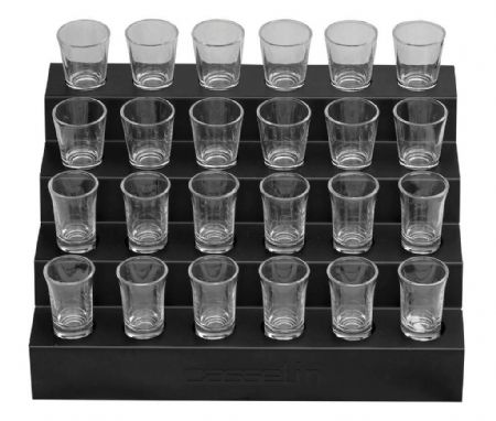Présentoir à assiettes noir avec 1 plaque en verre trempé et 4 assiettes - 1135x400x360 mm