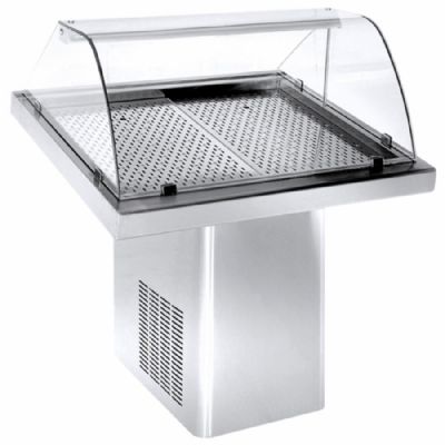 Comptoir froid statique avec étagère et façade vitrée verticale température 0/+4°C