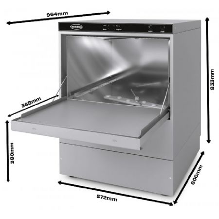 Ce lave-vaisselle à chargement frontal se distingue par ses caractéristiques techniques avancées. Avec des dimensions de 572x616x833 mm, il est conçu pour maximiser l'espace sans compromettre l'efficacité. Sa puissance totale de 3.6 kW et une capacité de traitement de 30 paniers par heure assurent un fonctionnement rapide et performant. La cuve de lavage de 35 litres et le temps de cycle de 120 secondes garantissent une propreté inégalée.