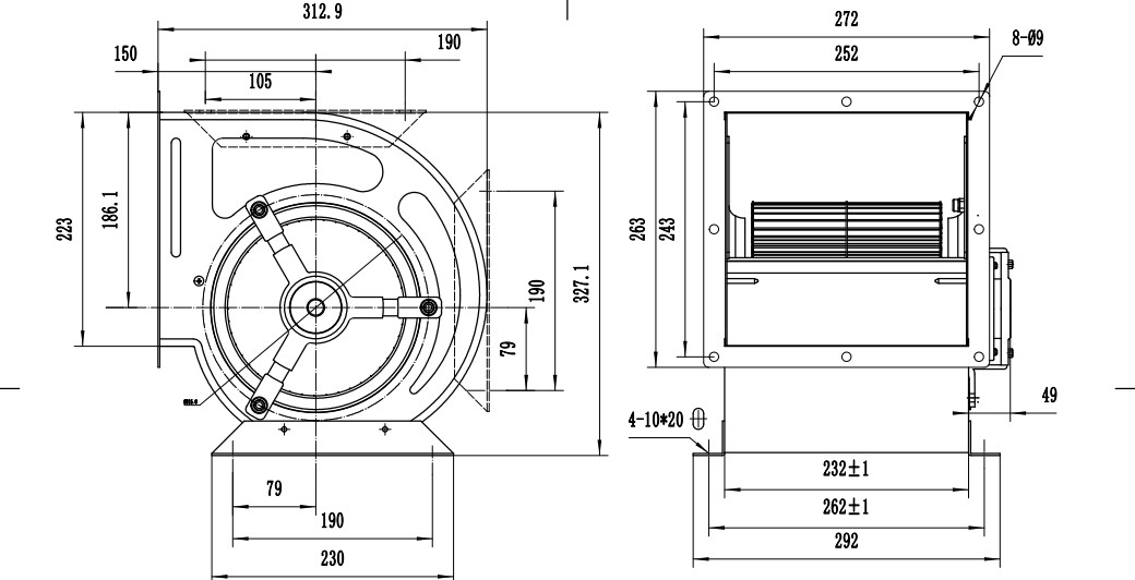 Moteur escargot pro pour hottes type 12/9/900 pour hottes 452x490x526