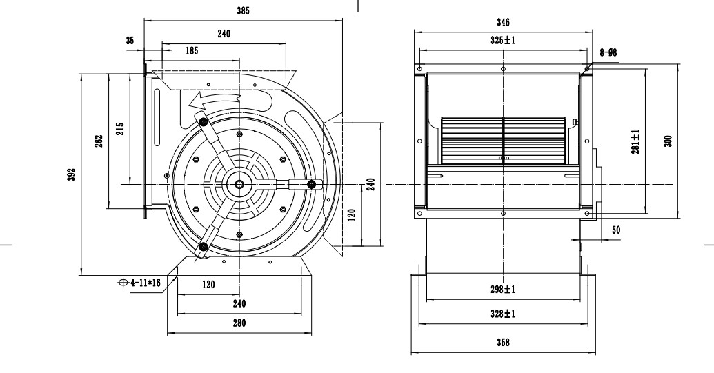 Moteur escargot pro pour hottes type 9/9 pour hottes 387x381x389