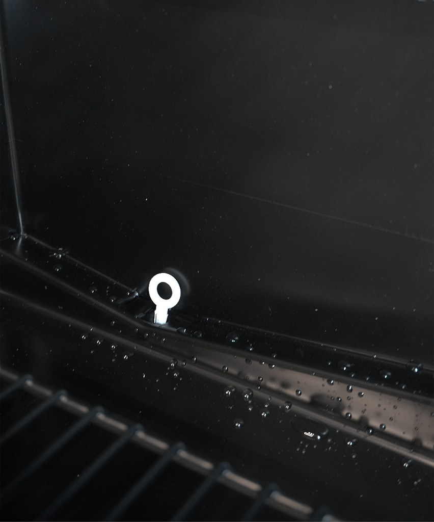 Ce modèle professionnel se distingue par son design entièrement noir et sa porte vitrée avec caisson lumineux qui attire instantanément l’attention sur vos produits.