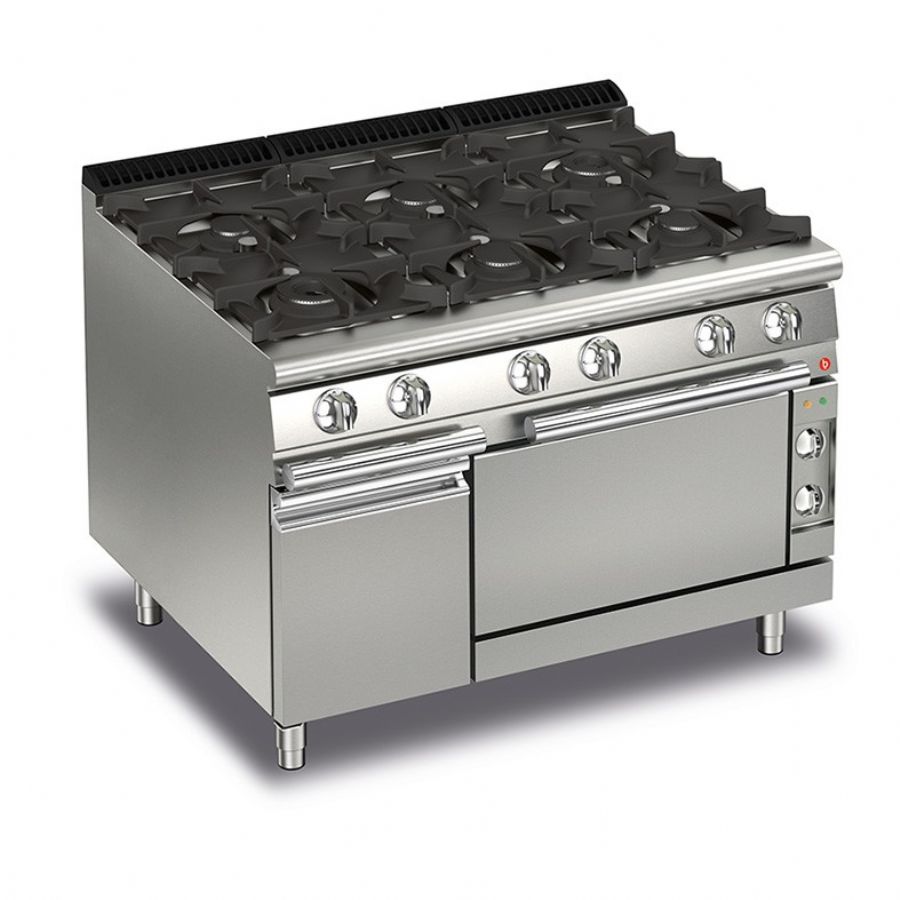 Piano gaz 6 feux vifs sur four électrique puissance 32,4 kW gaz et 6 kW - 1200x700x870