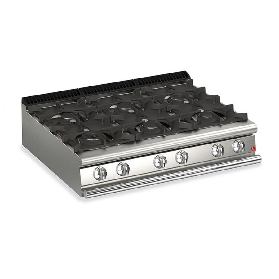 Fourneaux gaz 6 feux vifs sur meuble ouvert - 1200x700x910 mm