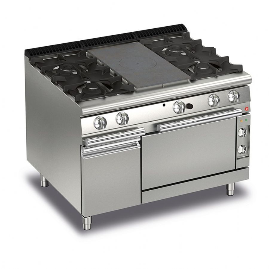 Fourneau gaz sur four électrique à porte fermée - avec 4 brûleurs vifs et 1/2 plaque coup de feu