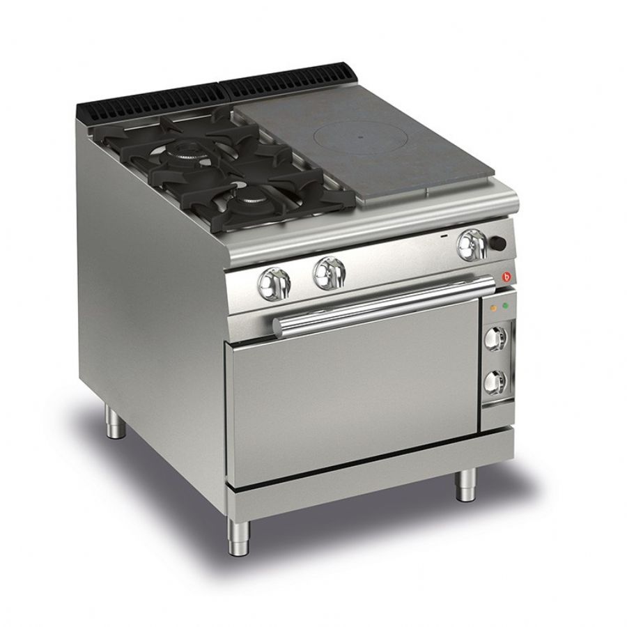 Fourneau gaz sur four électrique 2 brûleurs vifs + 1/2 plaque coup de feu 800x700