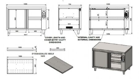 Meuble bas inox chauffant traversant ouvert avec 2 portes coulissantes - 1200x700x850 mm