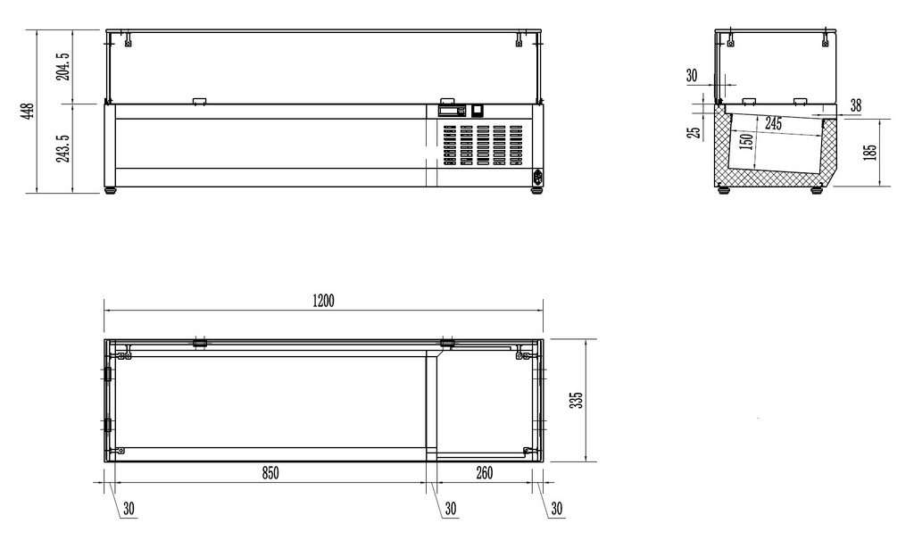 | Dimensions (LxPxH) (mm) | 1200x335x435 |