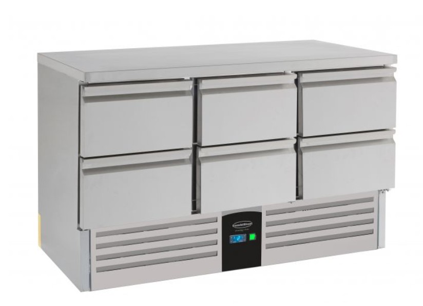 Table de travail réfrigérée 3 portes contenant 2 tiroirs chacun - classe B