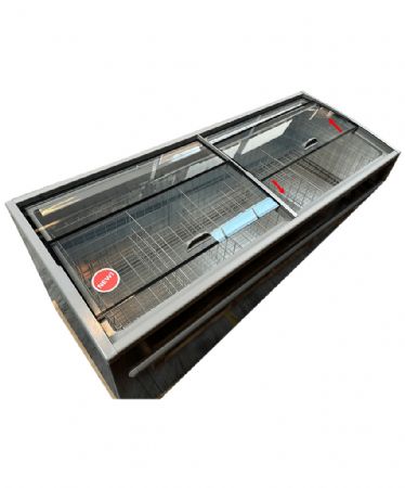 Congélateur vitrine îlot de supermarché blanc avec 4 couvercles coulissants plats 805 L - 2500 x 960 x 780 mm