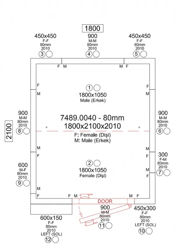 | Dimensions ext chambre (LxPxH) (mm) | 1800x2100x2010 |