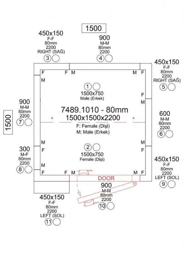 | Dimensions ext chambre (LxPxH) (mm) | 1500x1500x2200 |