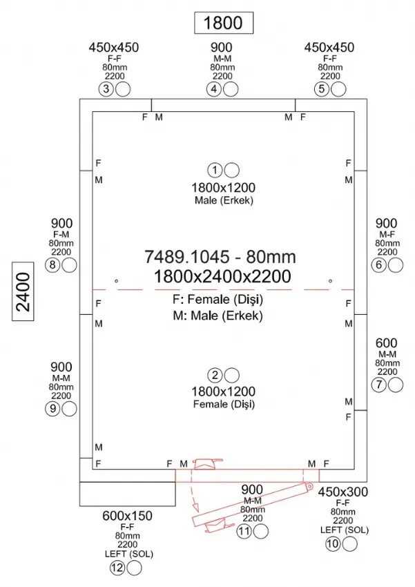 | Dimensions ext chambre (LxPxH) (mm) | 1800x2100x2200 |