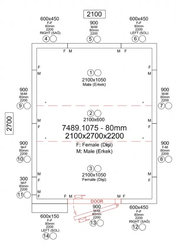 | Dimensions ext chambre (LxPxH) (mm) | 2100x2700x2200 |