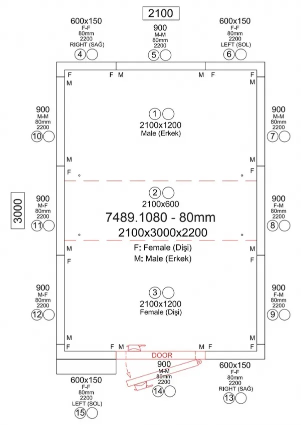 | Dimensions ext chambre (LxPxH) (mm) | 2100x3000x2200 |