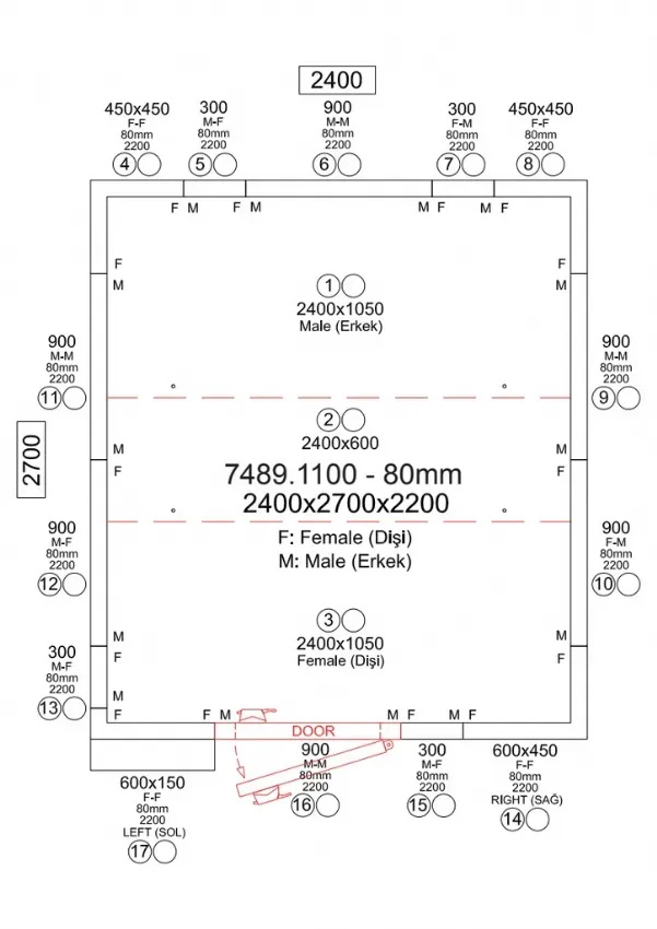 Dimensions extérieures de la chambre : 2400x2700x2200 mm