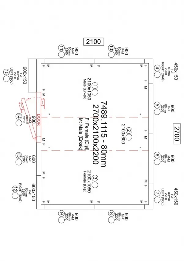 | Dimensions ext chambre (LxPxH) (mm) | 2700x2100x2200 |