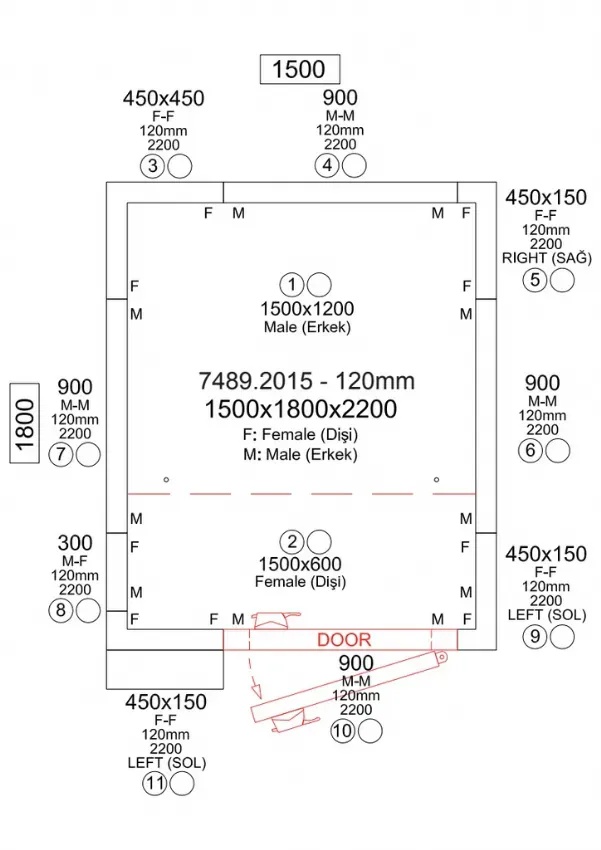 | Dimensions ext chambre (LxPxH) (mm) | 1500x1800x2200 |