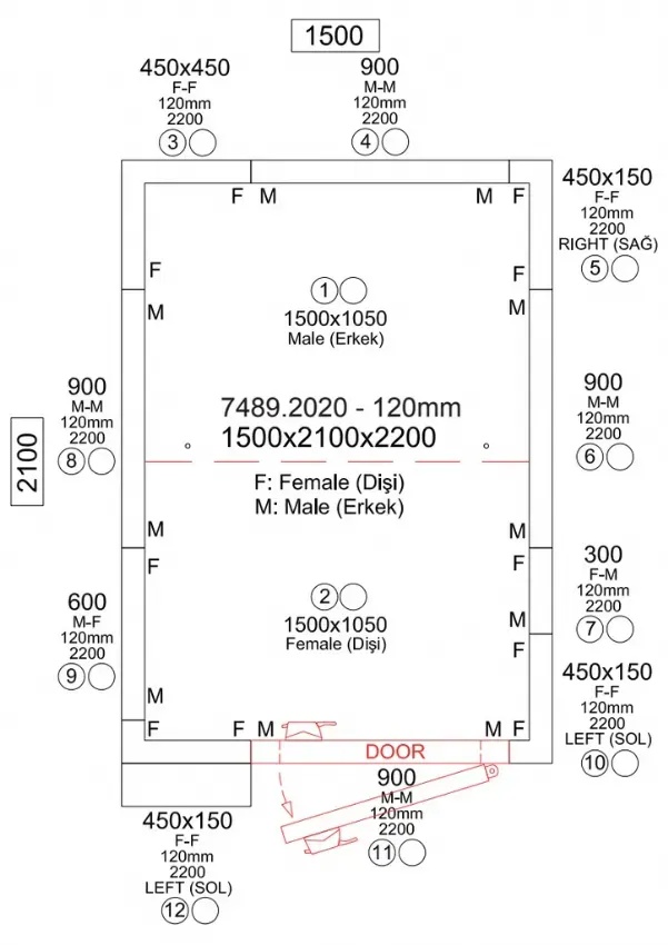 | Dimensions ext chambre (LxPxH) (mm) | 1500x2100x2200 |