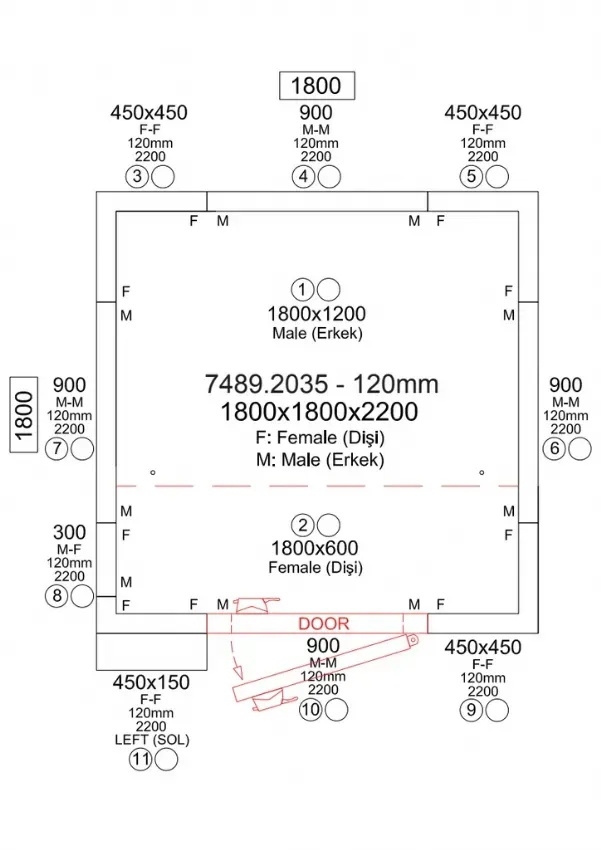 | Dimensions ext chambre (LxPxH) (mm) | 1800x1800x2200 |