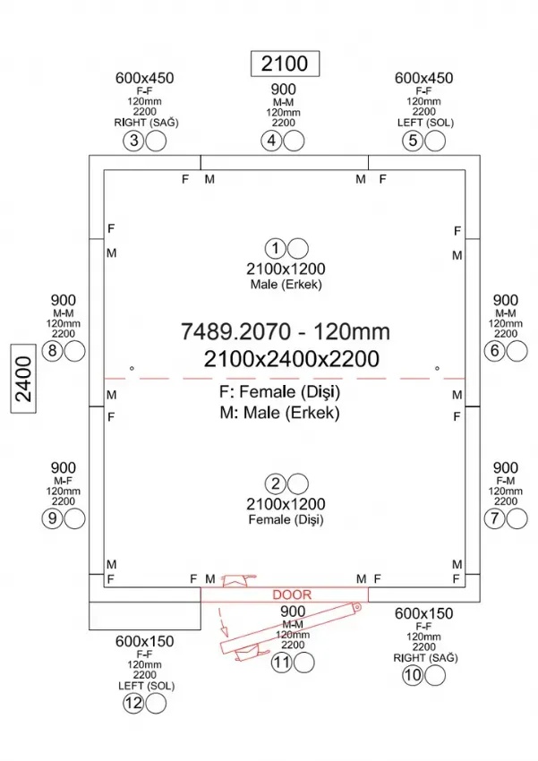 | Dimensions ext chambre (LxPxH) (mm) | 2100x2400x2200 |