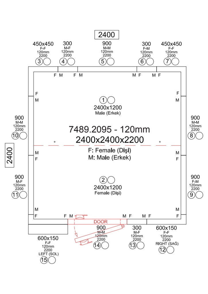 | Dimensions (LxPxH) (mm) | 2400x2400x2200 |