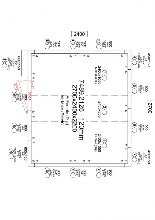 | Dimensions ext chambre (LxPxH) (mm) | 2700x2400x2200 |