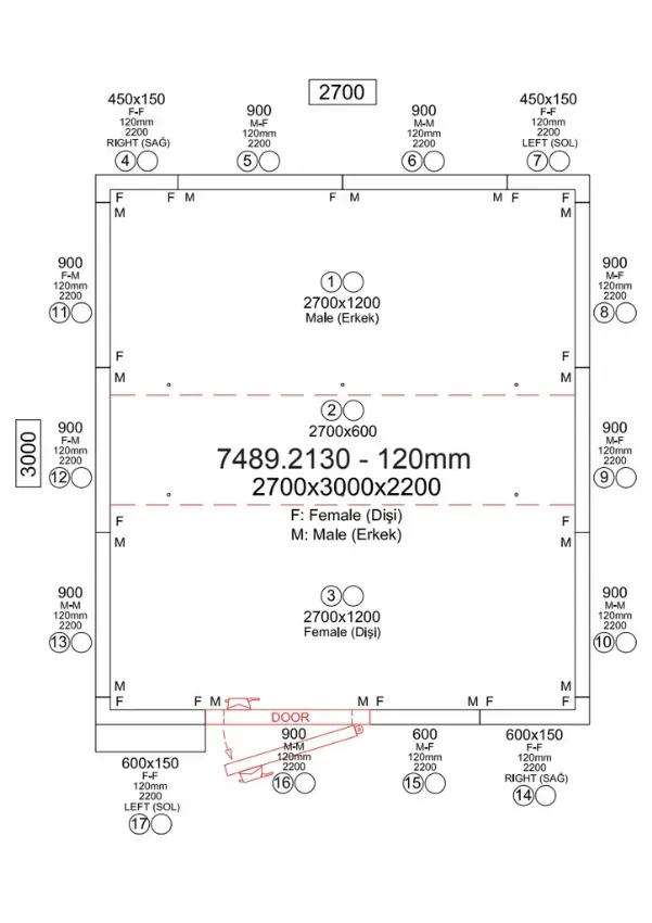 Dimensions extérieures de la chambre : 2700x3000x2200 mm