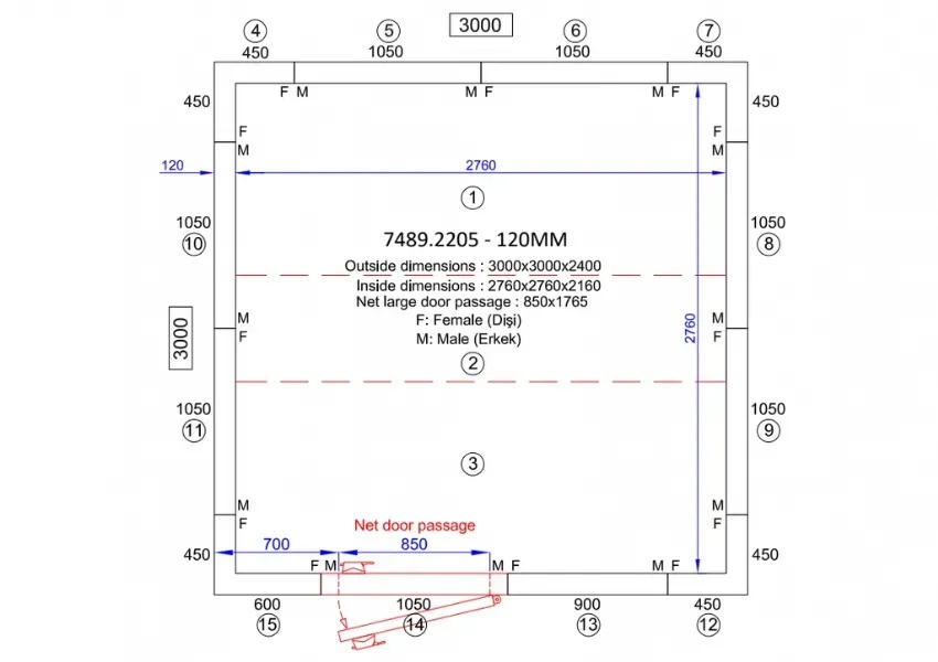 | Dimensions ext chambre (LxPxH) (mm) | 3000x3000x2400 |