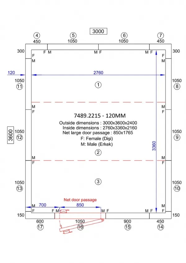 | Dimensions ext chambre (LxPxH) (mm) | 3000x3600x2400 |