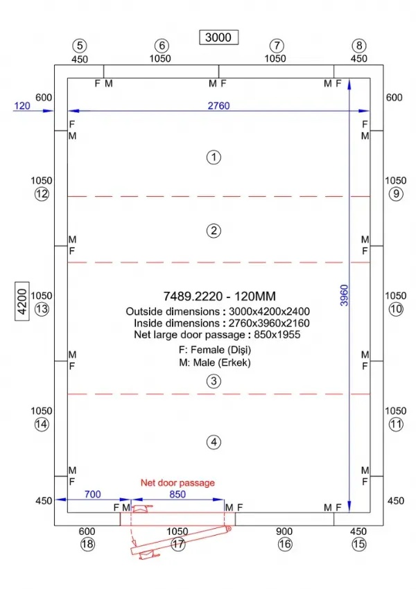 | Dimensions ext chambre (LxPxH) (mm) | 3000x4200x2400 |