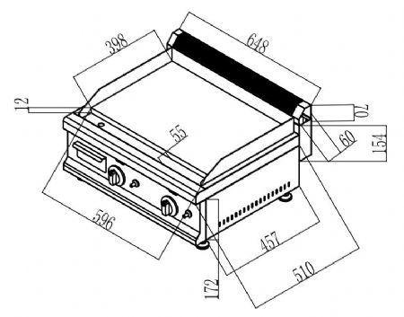 Plancha à gaz en inox - 6mm d'épaisseur - 600x470x230 mm