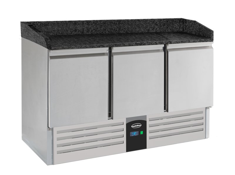 Table à pizza positive dessus granit avec 3 portes GN 1/1 - 1365x700x890 mm