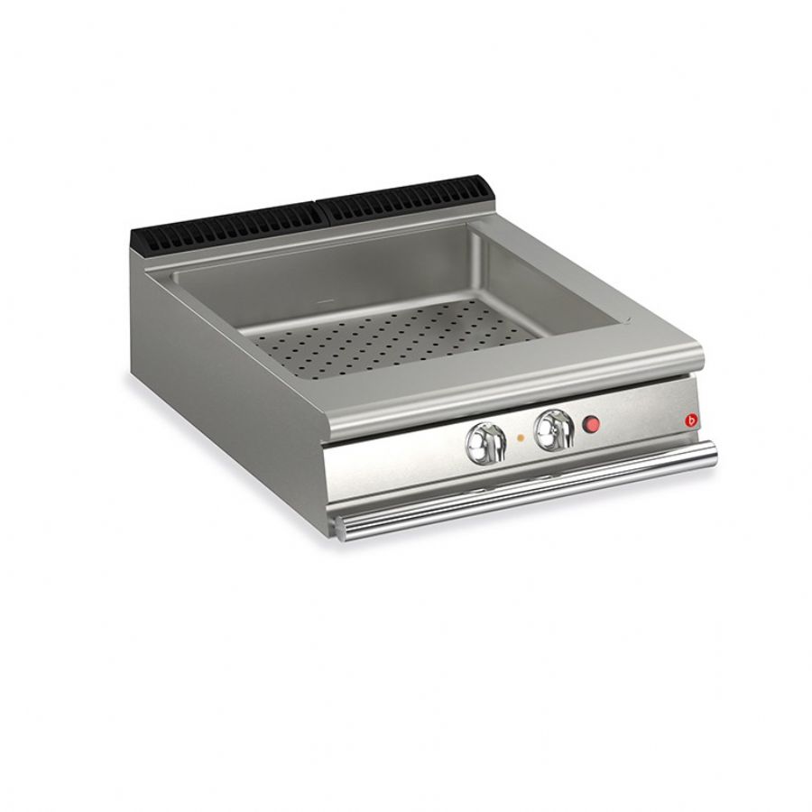 Le Top bain-marie électrique Baron Gamme Queen 900, référence 90QBME800, répond précisément à cette problématique. Sa cuve inox AISI 304 avec angles arrondis accueille une capacité de 1 x GN 1/3 et 1 x GN 1/1 (profondeur 150 mm), idéale pour la remise en température et le maintien au chaud des sauces, garnitures et accompagnements. Vanne de remplissage, vidange et chauffage par résistances blindées placées sous le bac garantissent des solutions conçues pour la sécurité et la robustesse en service intensif.