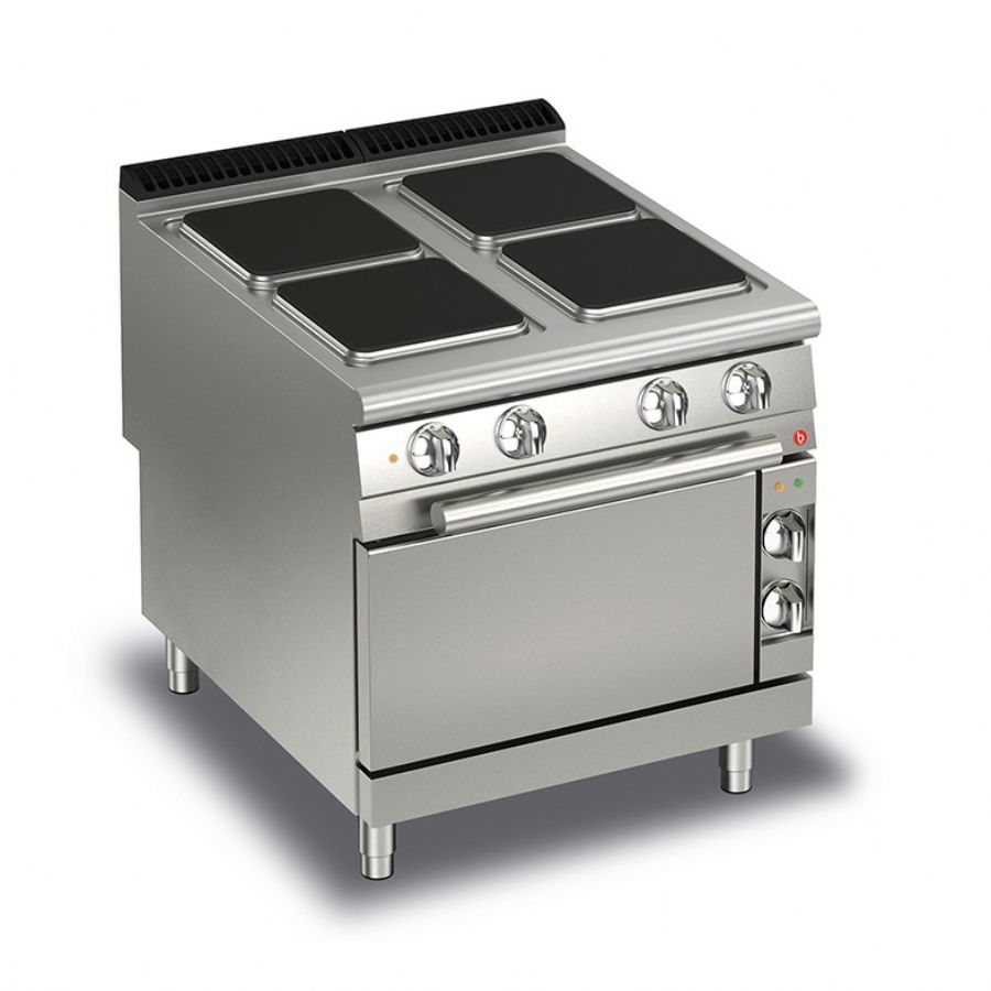 Fourneau électrique 4 plaques avec four électrique GN 2/1 - 800x900x900 mm