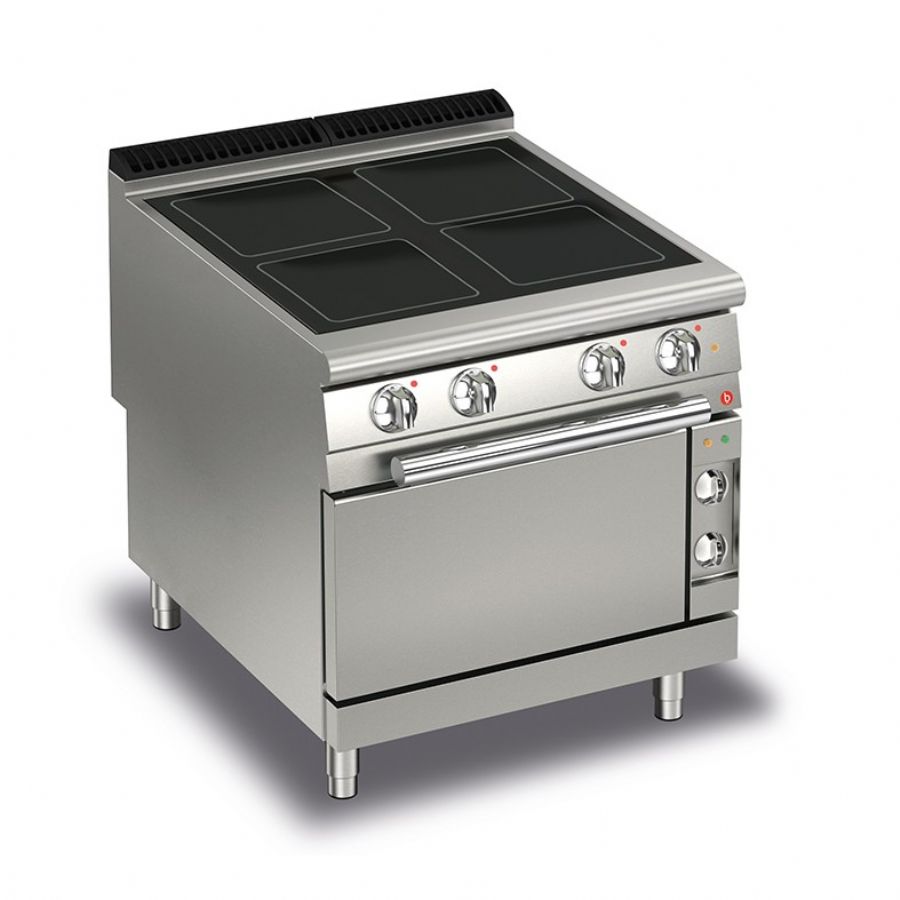 Fourneau électrique 4 plaques avec four électrique GN 2/1 - 800x900x900 mm