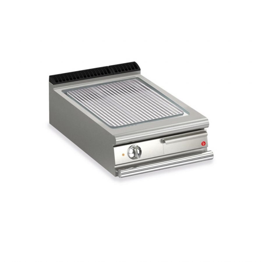 Plancha professionnelle électrique surface rainurée sur armoire ouverte - 800x900x900mm
