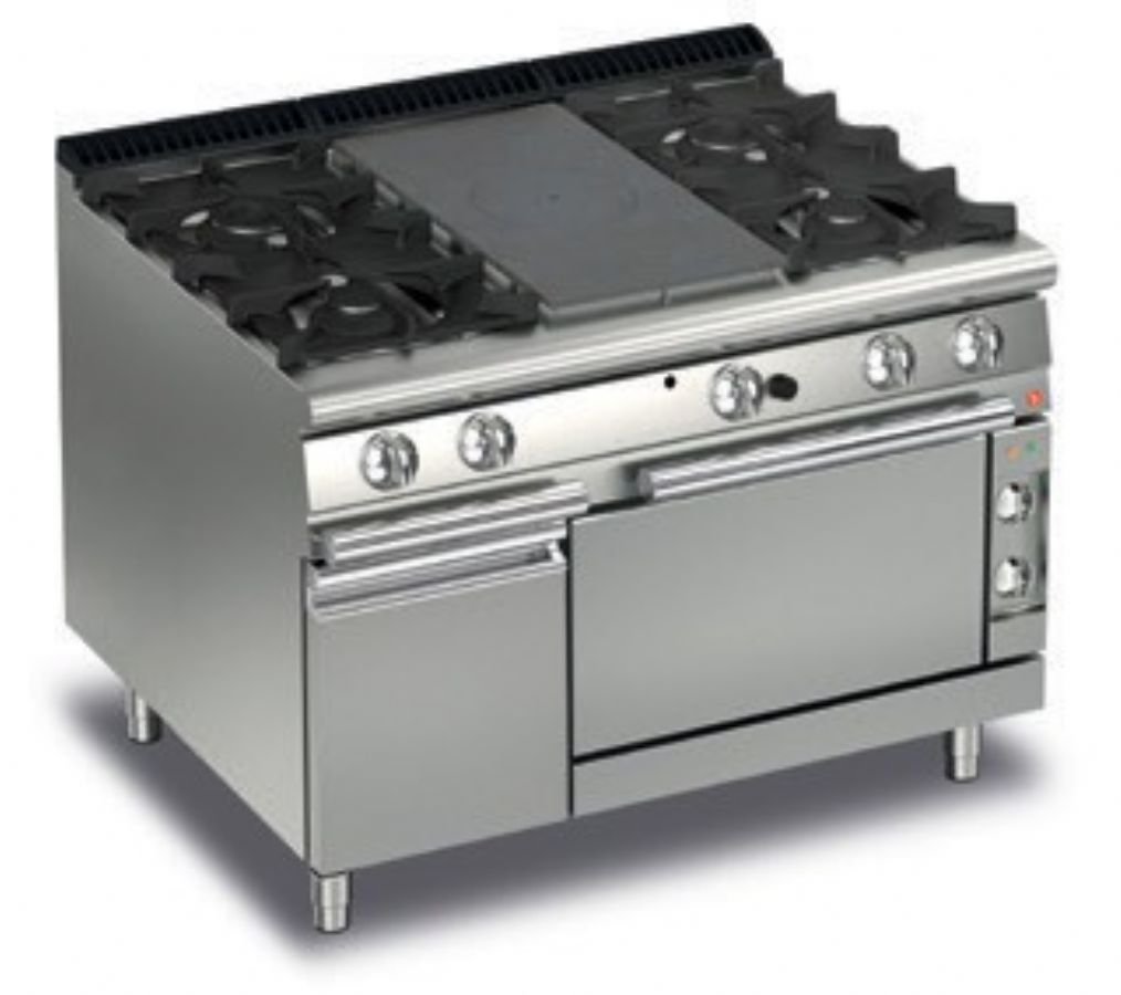 Fourneau gaz 6 foyers avec four électrique GN 2/1 et placard - 1200x900x900 mm