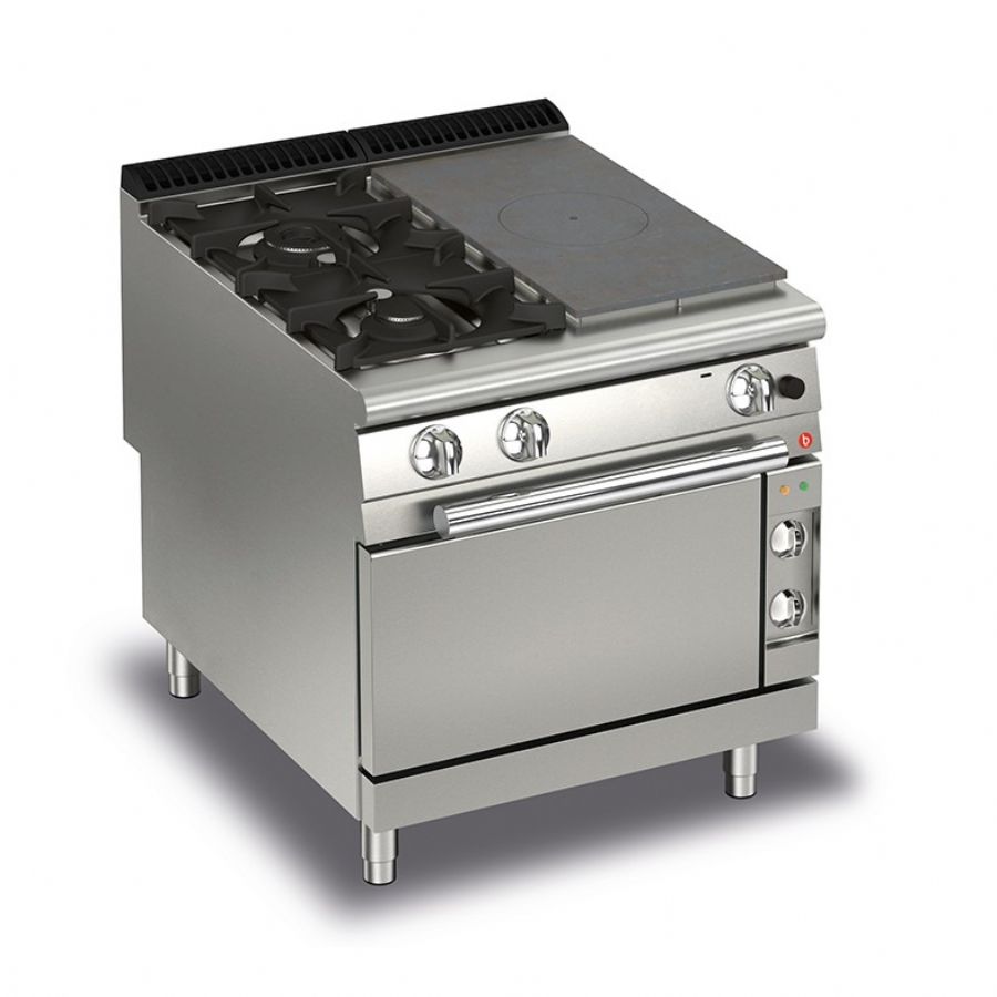 Fourneau à gaz 4 foyers avec four éléctrique 2/1GN - 800x900x900 mm